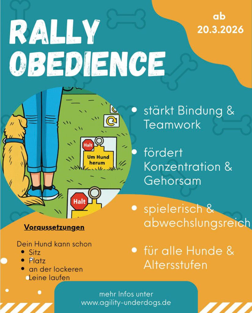 Wir freuen uns sehr, euch mitteilen zu können: Ab sofort haben wir wieder freie Plätze in unserer Rally-Obedience-Gruppe! Rally Obedience ist eine abwechslungsreiche und moderne Hundesportart, bei der Teamarbeit im Mittelpunkt steht. Mensch und Hund absolvieren gemeinsam einen Parcours mit verschiedenen Stationen. An jeder Station befindet sich ein Schild mit einer Übung – zum Beispiel Sitz, Platz, Richtungswechsel oder Kombinationen aus mehreren Elementen. Es ist eine tolle Möglichkeit, die Bindung zwischen Mensch und Hund zu vertiefen und dabei geistige sowie körperliche Auslastung zu bieten.